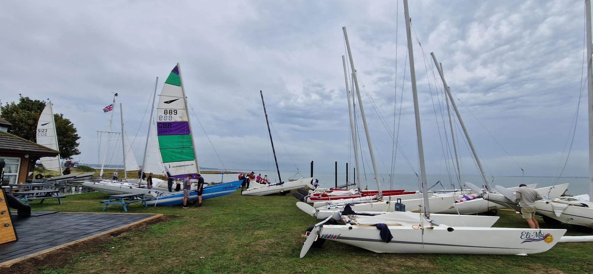No wind turned into plenty of wind and then died to nothing again. Briefing over and a tidal deadline beckoning, the flock nervously started going a float. The first daring birds to risk entering the Thames estuary on a rising tide nervously debated what would happen when they were swept up to tower bridge, however as the Tom Gobbler Boss had promised 100m off shore, the breeze filled in and boats successfully made there way down stream to the start area.